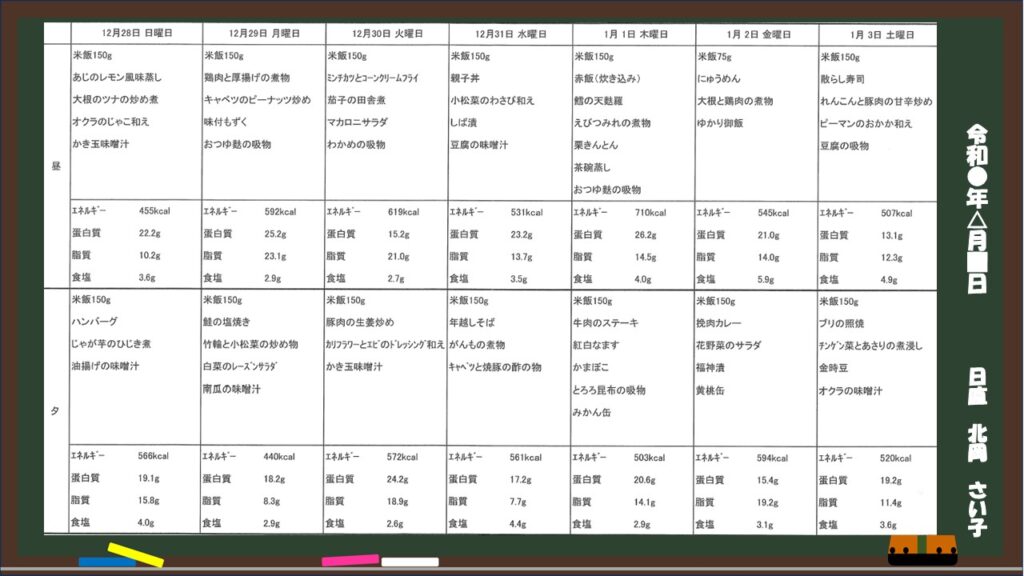 まごのて来週の献立【12/28~1/3】